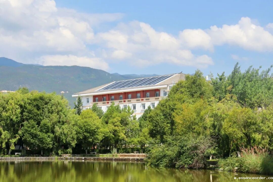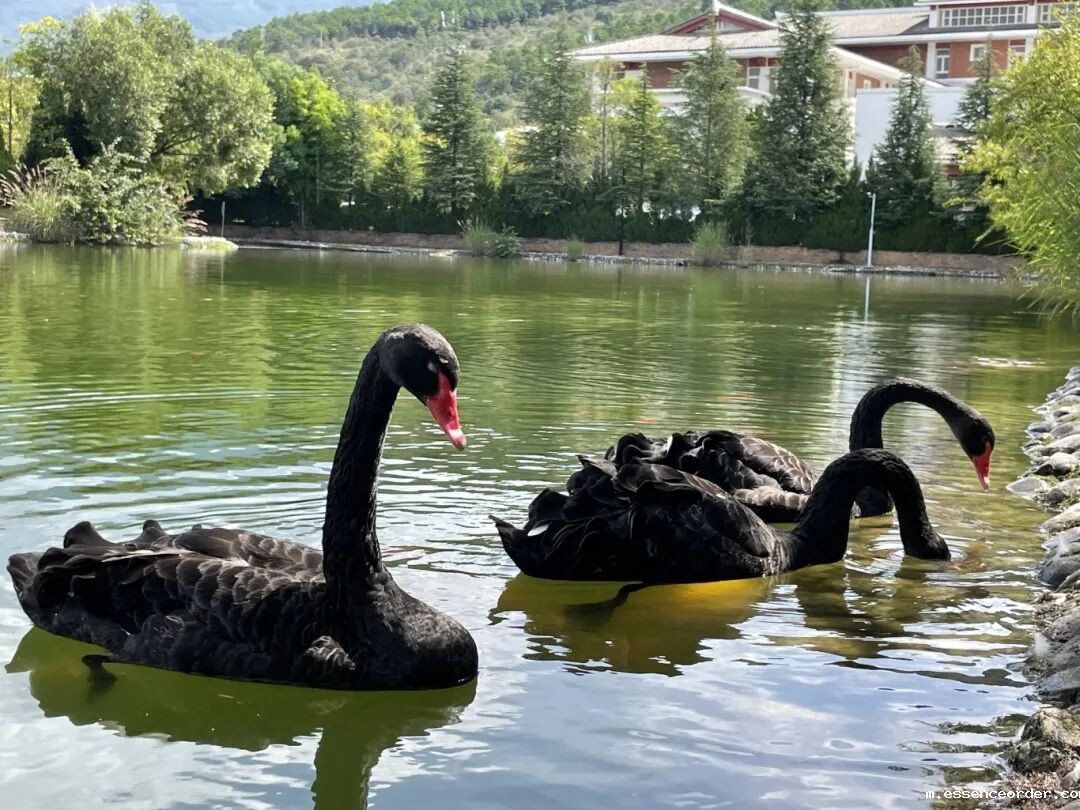 它静立于图书馆正对面,映雪湖犹如一颗碧色翡翠,天然分隔南北两区,也连起了知识与自然。湖水澄明如玉,清晰映照巍峨雪山与飞檐翘角;湖面时常优雅游弋的四只黑天鹅,更为这片静谧水色增添了几分生动与诗意。